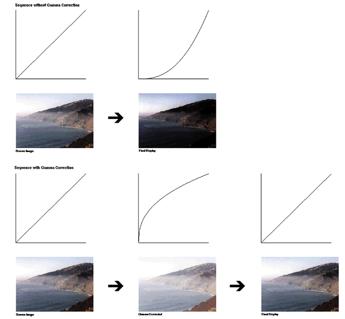 Figure 1: The results of displaying an image on a monitor and the effects of gamma correction.