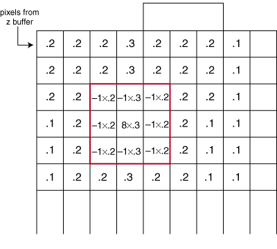 Figure 4: Laplacian operator acting on an edge-like inflection.