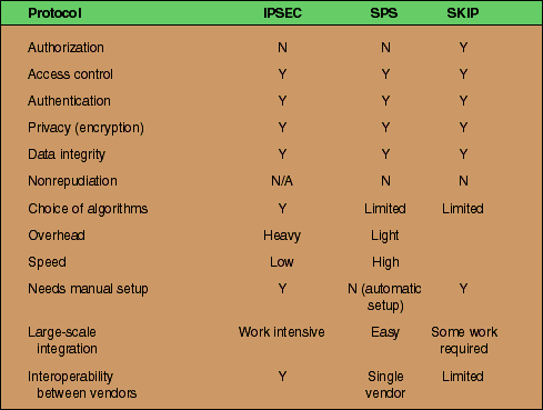 Table 1: Comparison of the features of the true IP protocols