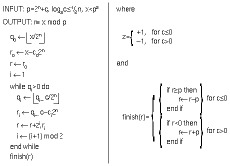 Figure 3: The fast modular reduction algorithm of Mohan and Adiga.