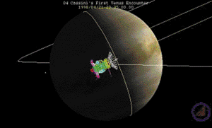 Figure 1: A SOAP-generated view of the Cassini probe at its first encounter with Venus in April 1998.