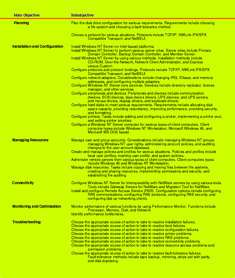 Table 1: Objectives of the 70-067 exam.