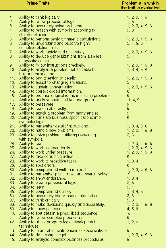 Table 1: PAAT Prime Traits.