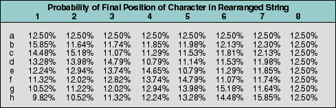 Table 2: Probability for each position in the initial string to end up in each position in the shuffled string.