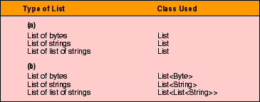 Table 1: Processing lists. (a) Java; (b) with generic types.