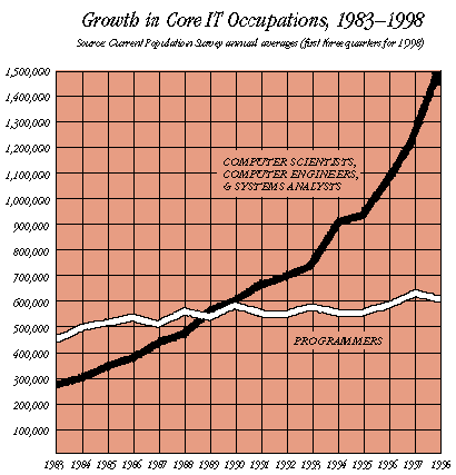 Figure 1: Growth in core IT occupations, 1983-1998.