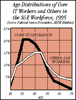 Figure 3: Age distribution of core IT workers and others in the S&E workforce, 1995.