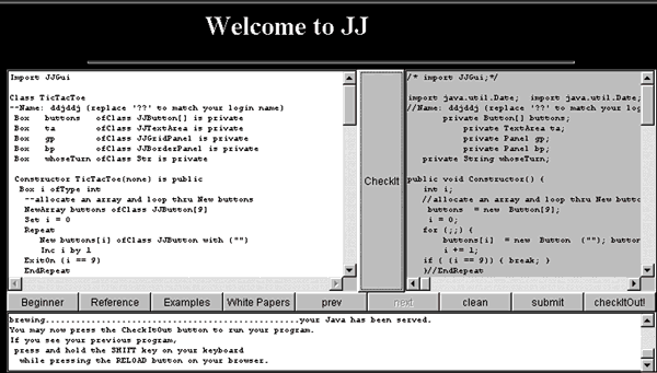 Figure 1: Results of compiling a JJ Tic-Tac-Toe program.