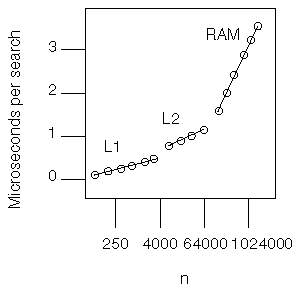 Figure 5: Binary search on a 400-MHz Pentium II.
