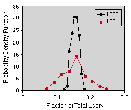 Figure 3: Probability of a certain fraction of all users being online simultaneously.