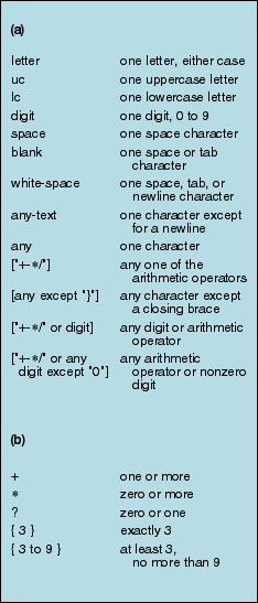 Table 2: (a) Character classes and occurrence operators; (b) an occurrence operator after any character tells how many times that character can occur.