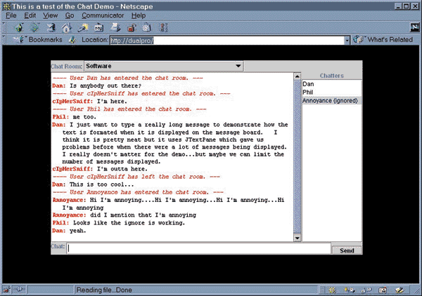 Figure 2: Chatroom application implemented using JMS APIs.
