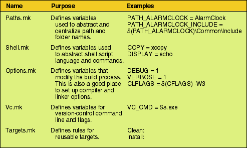 Table 1: Functionality of the included Makefiles.