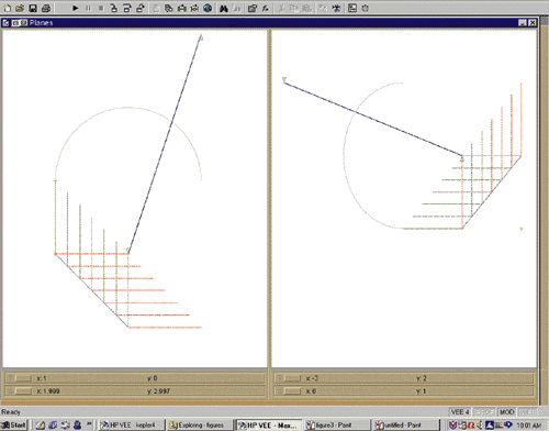 Figure 3: A typical Euclidian construction. Markers indicate the endpoints of the blue line segment.