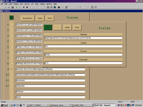 Figure 4: An electrostatic field problem composed on the Fields and Traces panels.