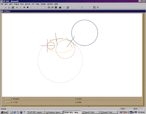 Figure 9: Maxwell illustrates concepts in differential geometry. A unit circle and an ellipse are drawn. Commands draw normal vectors, tangent vectors, and osculating circles at three points on the ellipse.