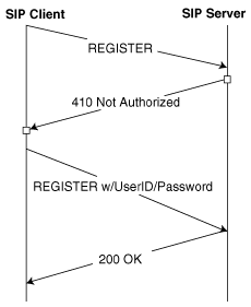 Figure 1: Packet flow for SIP Basic authentication.