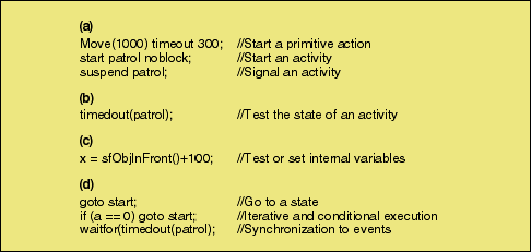 Table 1: Colbert statements: (a) control actions; (b) activity state tests; (c) internal state actions; (d) sequencing actions.