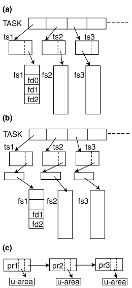 Figure 1: (a) Process information for Linux (old version); (b) process information for Linux (Version 2.00 and above); (c) process information for Sun OS.
