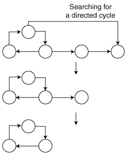 Figure 5: Operations are repeated until either we decide the graph has a cycle or we have no nodes left.