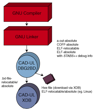 Figure 4: Source-level debugging of GNU-compiled and GNU-linked applications.