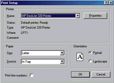 Figure 2: Modified Print Setup dialog box.