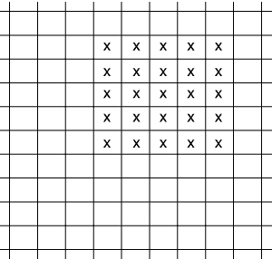 Figure 3: If the wind goes toward the east the next day, then the fire will spread as you can see by the end of that day. However, by the end of that day, the leftmost column will be burnt out.