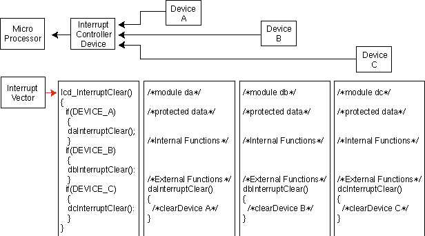 Figure 4: Interrupt controller example (modules A, B, C source files).