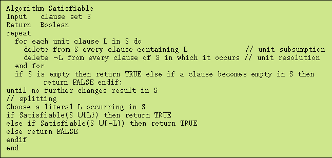 Figure 3: The Davis-Putnam procedure for checking whether a given formula in CNF is satisfiable.