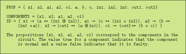 Figure 5: Specification of the circuit in Figure 4 in propositional logic.