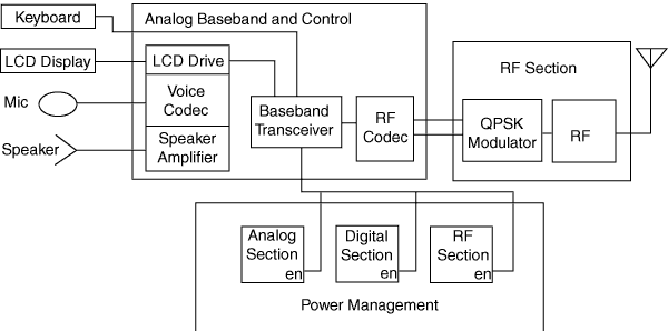 Figure 1: Digital cellular handset block diagram.