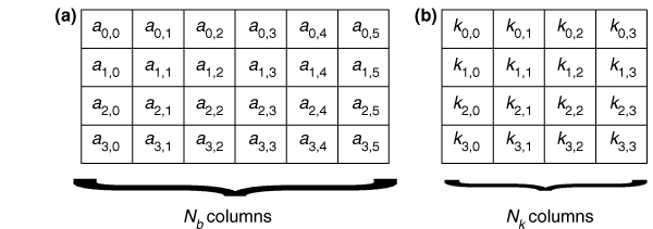 =6); (b) example of the cipher key layout (with N