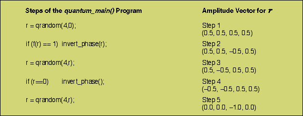 Figure 8: The evolution of amplitudes of r during the steps of the quantum search algorithm where N=4 and the solution that makes f(x)=1 is the third value.