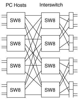 Figure 1: Myrinet Switch M2M-OCT-SW8 showing internal crossbars.