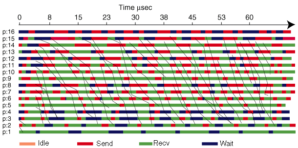 Figure 6: Time-space diagram for Sweep3D running on PC cluster.