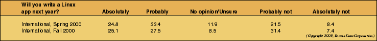 Table 5: Writing Linux apps next year (International).