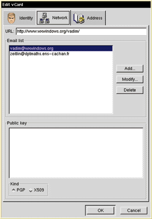 Figure 2: A Vcard dialog box.