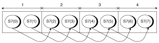 Figure 1: SIMD execution of a loop with data-dependence relations that have a distance=2.