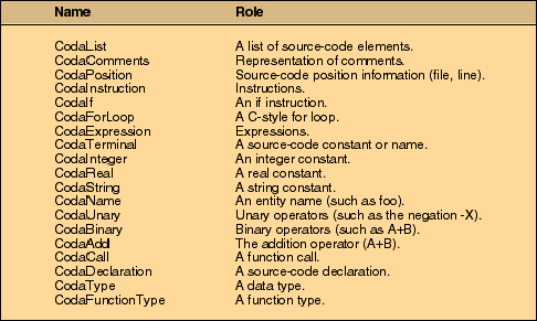 Table 2: Important Coda classes.