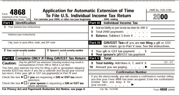 Figure 1: IRS Form 4868.