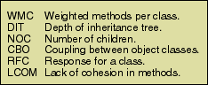 Table 6: Chidamber and Kemerer's proposed suite of object-oriented metrics.
