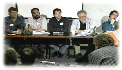 The first panel discussion was devoted entirely to Gabriel's thesis. Panelists included legendary language guru Guy Steele, Symbolics cofounder Dan Weinreb, Python developer Jeremy Hylton, language developer Ken Anderson, and Perl developer Simon Cozens.