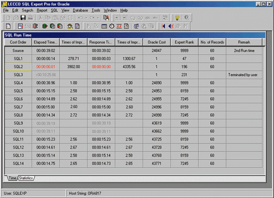 Figure 4: Oracle cost estimate and benchmarking results, with detailed statistics.