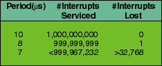 Table 2: One billion periodic interrupts generated at various frequencies.