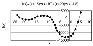 Figure 4: The function f(x)=(x+15)*(x+10)*(x+20)*(x-4.5).