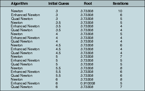 Table 1: Solving for the root of f(x)=exp(x)-3*x