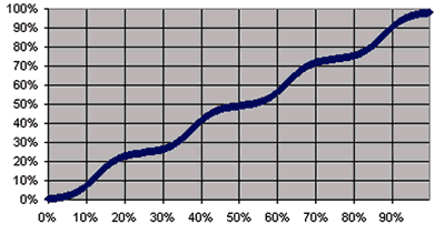 Figure 4: Percent complete curve for a four-iteration project.
