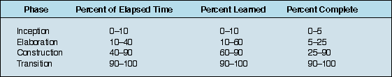 Table 2: Learning and completion metrics for phases in the Rational Unified Process.