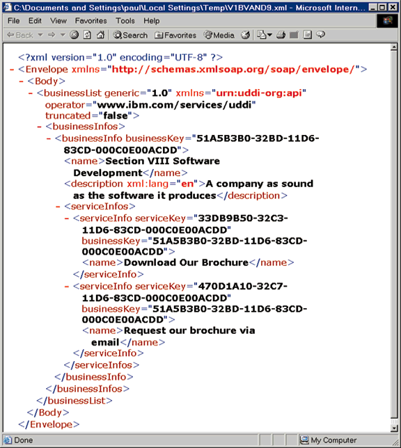 Figure 3: The response from a UDDI query.