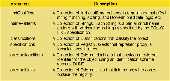 Table 2: JAXR arguments.